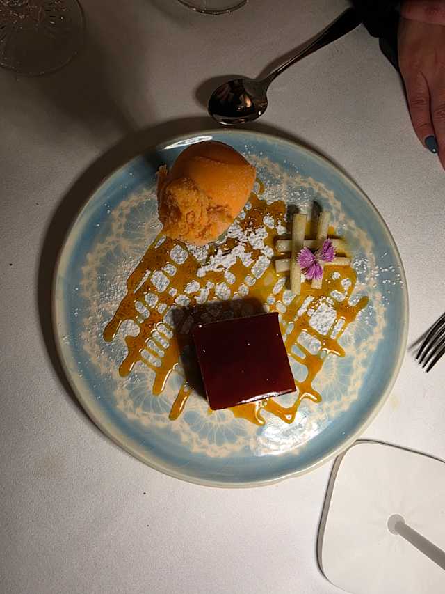 - Trilogia do mar: vieiras caramelizadas, gambas com alho, amêijoas à bulhão pato