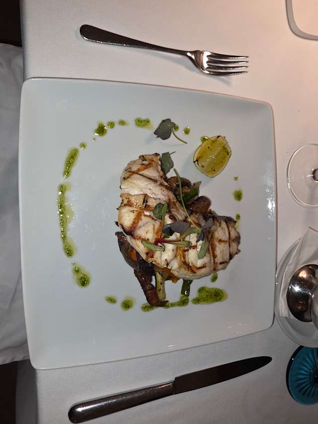 - Lombo de pregado grelhado, molho de marisco, batata sauté e legumes