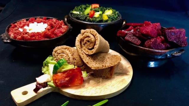 Raw or rare minced beef, seasoned in ethiopian butter, red chili pepper “mitmita“