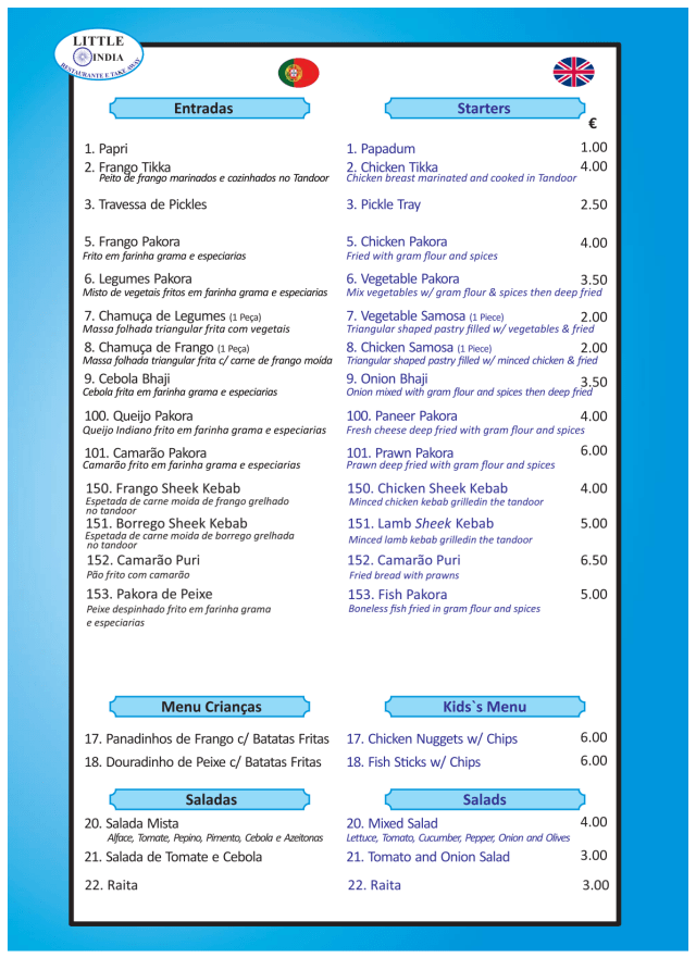 Fabulous food and served by excellent waiters who are polite and well trained and always smiling. Little India is a must when you visit Tavira!