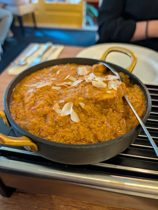 5.5/10Did not like. The dishes are barely warm. Due to the spiciness, it is not possible to feel the real taste of food; the receptors are dulled. The okra was slimy. Kulfi is also not great. The gravy for the rice is not tasty. The meat was most disappointing; we expected it to be cooked, squeaky, super hot, but in reality it seemed like it was prepared in advance and only heated up before serving, and even then not enough.