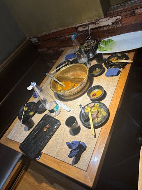 9/10I had a really fun time with some friends and the staff was really nice since they explained everything for me as it was my first time doing hot pot. The lighting was a bit dark but it wasn’t too much of a problem. Very fast and food was tasty, very wide selection.