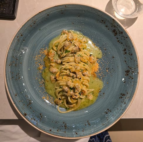 8/10The food was good, but I confess I expected something outstanding and it was not, for my taste. The service was very good with a bit of special offers in the arrival. Excellent bread and focaccia. In my opinion, the price is overrated even for a place where the quality of the food is great and the sea food is fresh (Euro 25 for a pappardelle with a few pieces of shrimp. It was a good experience, but I am not sure if I would come because of the cost.