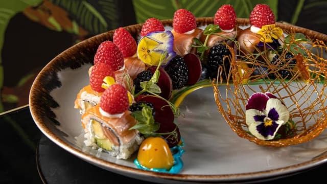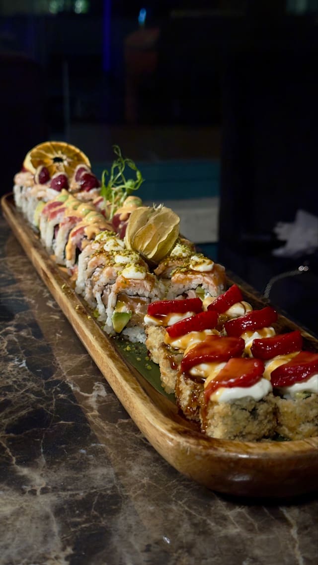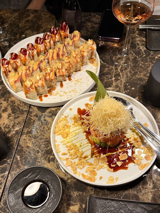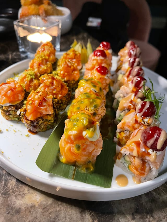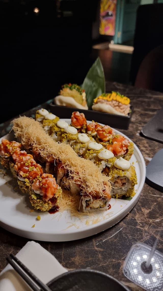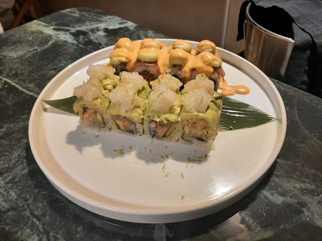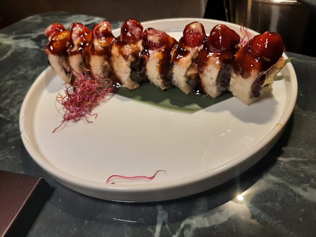 8.5/10Nice environment with multiple rooms, interesting take on sushi with fruits, the top floor is nice for the summer a bit chilly on a cold winter night.