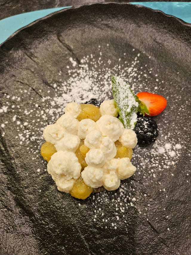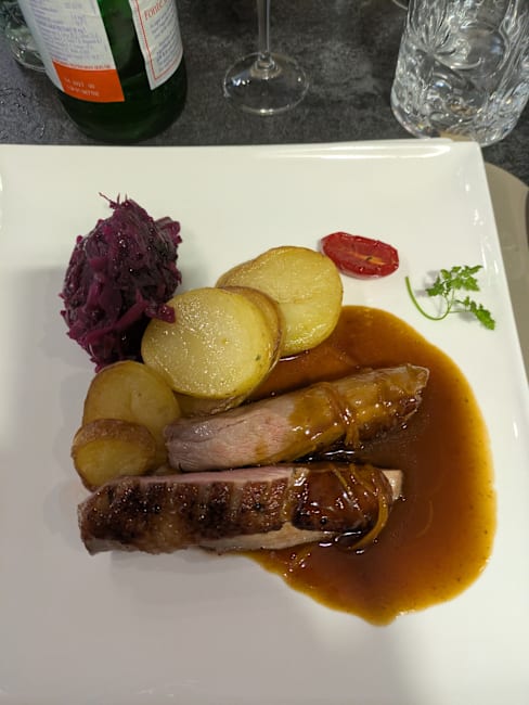6.5/10Initial impression… impressed. We were slightly early but that wasn’t a problem. Nice table under cover outside. One of the waiters assisted with choosing from the menu. Starters came quickly. Soufflé very bland. Main course - Suckling pig, fat was not crispy. Turbot was pleasant but bland. Food was well presented but there was no texture; even the sauté potatoes were soggy. We declined a dessert and shortly afterwards, a different waiter picked up our bottle of white wine and with a comment along the lines of you can’t leave that, started to share it between our glasses. This was done very casually and there was obviously more than he thought, so quite a lot of the wine ended up on the table. We left feeling underwhelmed and rather disappointed.