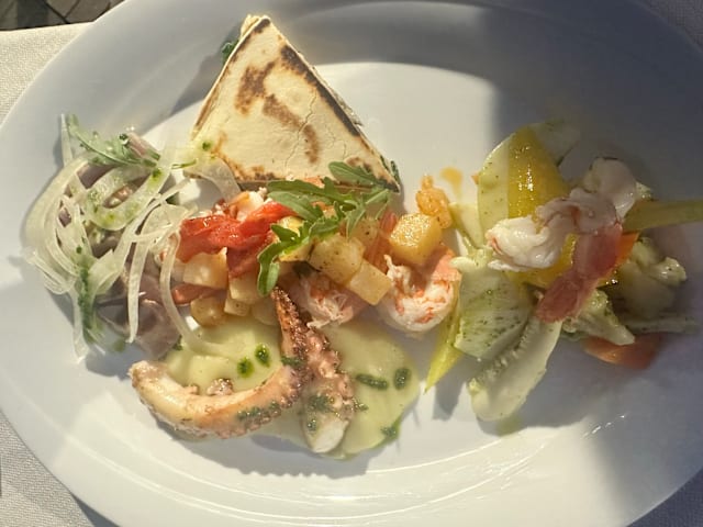 5/10Scampi and Mezancolle was not fresh anymore they were soft and atarnge taste , the fritti misto was not crispy enough , all food arrived cold :( dissapointed
