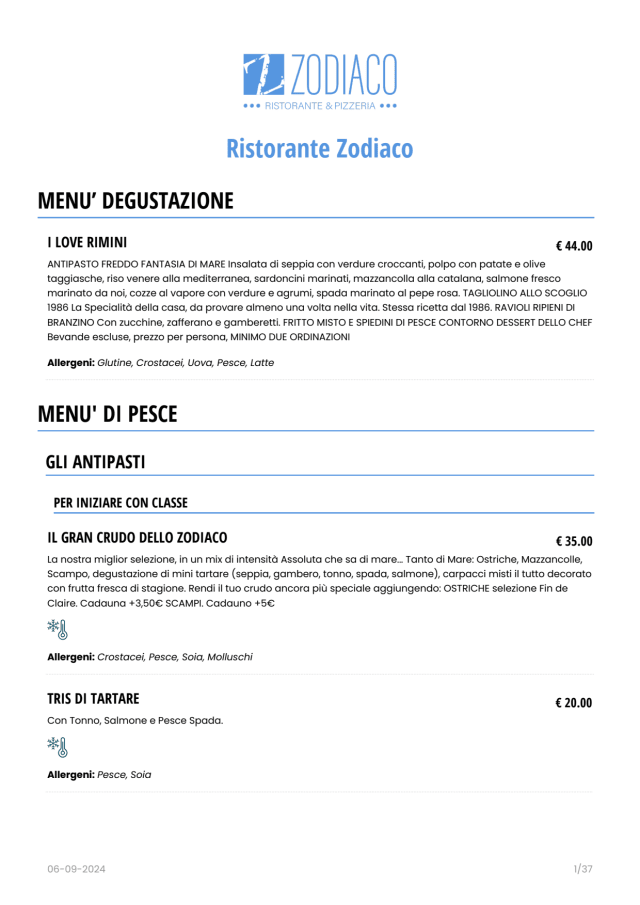 10/10I think lo Zodiaco is really one of the best restaurants in Rimini. Very good wine, the stuff was very helpful. All seafood was fantastic! I'll definitely come here again.