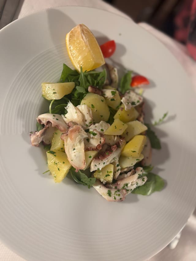 9/10Wonderful front of house female staff member (sorry unknown name ) . Our friends were in a taxi accident and arrived late . We had beautiful food .Superb octopus !! Would return just for that ! Semifredo was beautiful also !