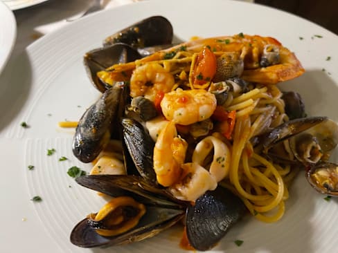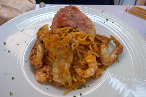 9/10Tucked away on a side street away from the pedestrian traffic, which made the restaurant quiet. Seafood pasta options were pretty solid. No complaints with service