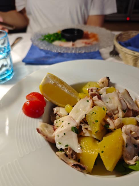 9/10Wonderful front of house female staff member (sorry unknown name ) . Our friends were in a taxi accident and arrived late . We had beautiful food .Superb octopus !! Would return just for that ! Semifredo was beautiful also !