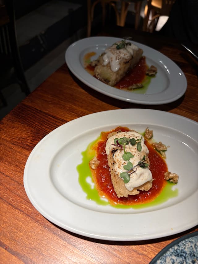 9.5/10The food was delicious and beautifully presented, and everything came out very quickly. Service was outstanding, and the atmosphere felt warm and welcoming. The only downside was the view of the dumpsters from the window, but apart from that, it was a great experience!