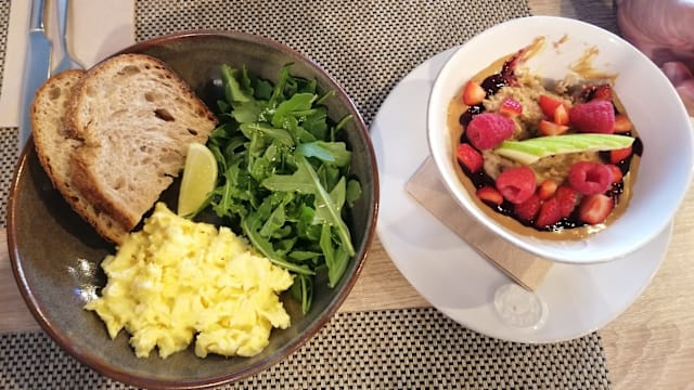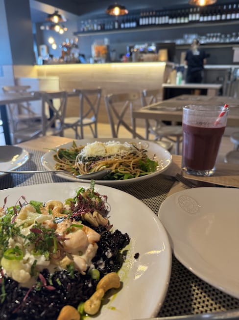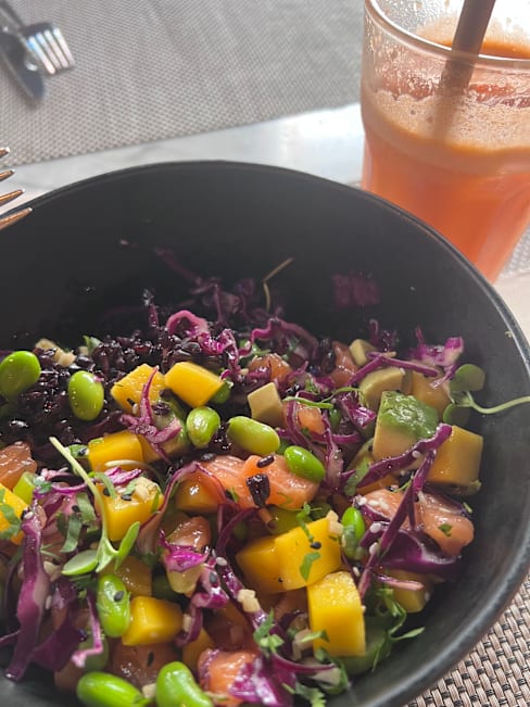 7/10Food is ok, nothing spectacular I had a Poke bowl. Was 80% rice. Small piece of egg, even less avocado. Worth €13.? Service is good but not enough servers for a busy lunch hour. Best part: GF chocolate hazelnut cake. Very good.