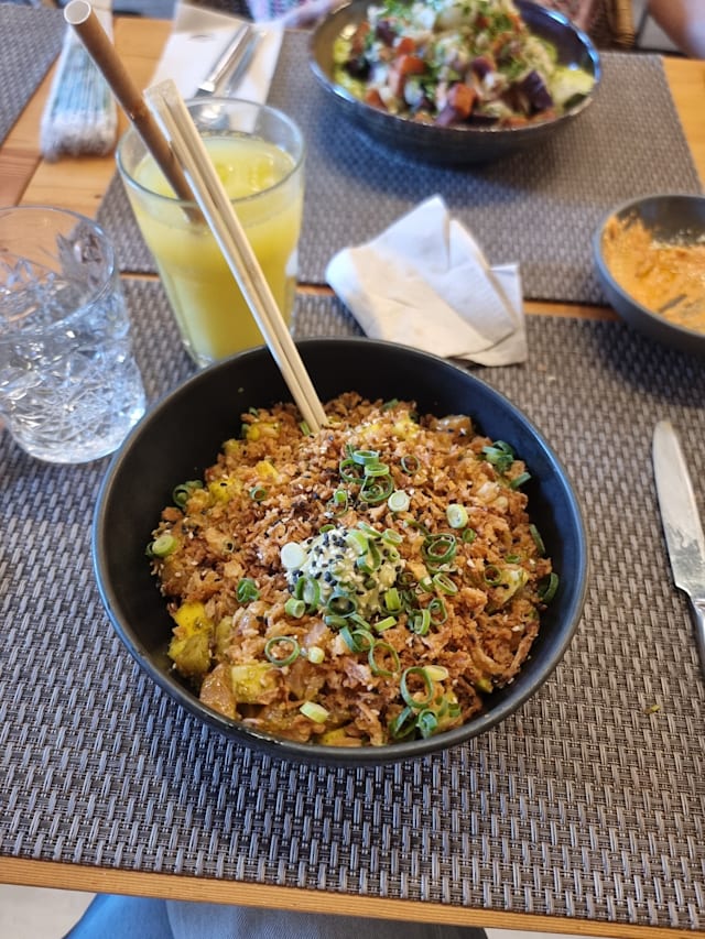 10/10The food and drinks were delicious! Beautifully served and carefully crafted, our gin and tonics were a work of art. The menu is extensive with something for everyone who loves to eat clean and healthy. Plenty of Vegan, Vegetarian, Pescatarian and other diet options! We tried several and all were delicious. We cannot wait to go back!