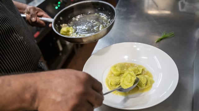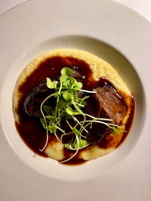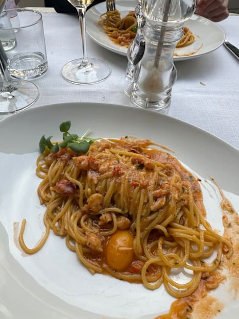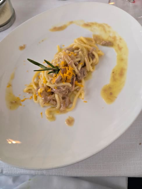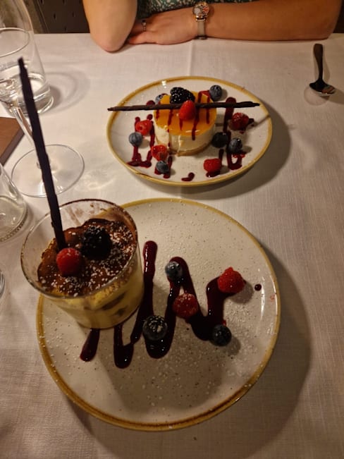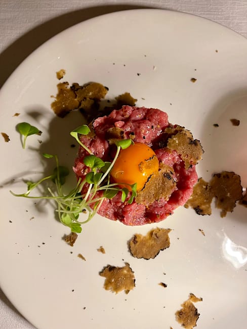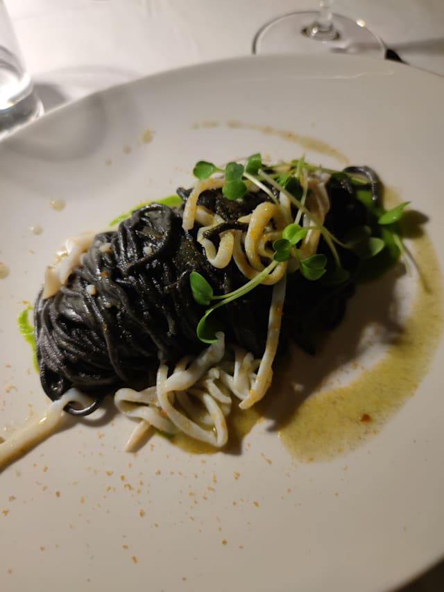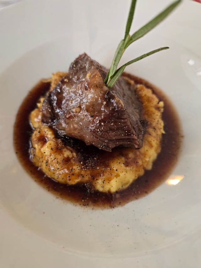 9/10+1I came here for my niece’s birthday celebration dinner. We each had a pasta primi (Tagliatelle di Pasta Fresca al Tartufo Nero e Porcini and Tagliolini di Pasta Fresca al Nero di Seppia con Calamari e Bottarga di Tonno) which was delicious. The pasta was well cooked and the flavours delicately balanced. This was followed by a main course of Guancia di Manzo al Vino Amarone su crema di Patate (quite heavy but extremely tender) and the tartare with truffle (rich and delicious). We had ordered glasses of wine which arrived promptly. We shared a dessert of La nostra Sbrisolona con Crema pasticcera e Grappa di Amarone. The portions were generous and the food was all well cooked and presented. The slight disappointment was the service which was functional but not as warm as expected. No one really checked in on how our meal was going and apart from taking away our dishes and bringing the next one in, we had very little contact or conversation with the wait staff. The ambience in the restaurant was lovely. Tables were at a good distance apart so we were able to talk without feeling like people were listening in. All in all, it was a lovely place to have a meal and I’d recommend heading here if you’d like quality food in a nice setting.