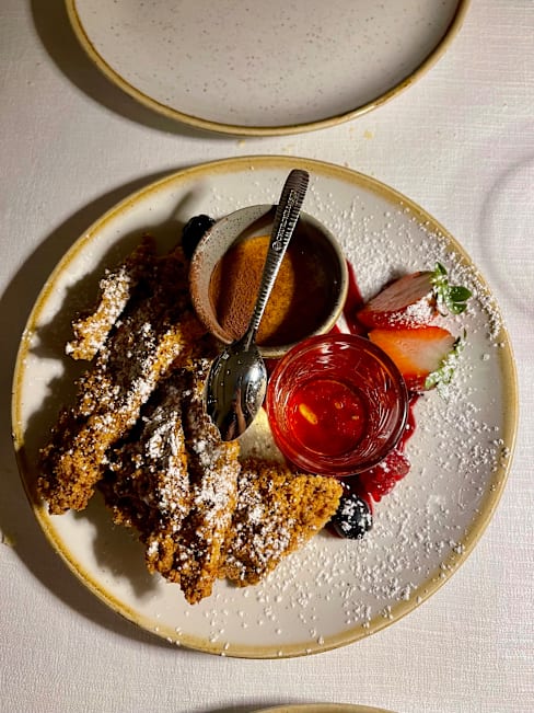 6.5/10Service was quite good, but noise from traffic on cobble stone street was not restful. Food was just ok.
