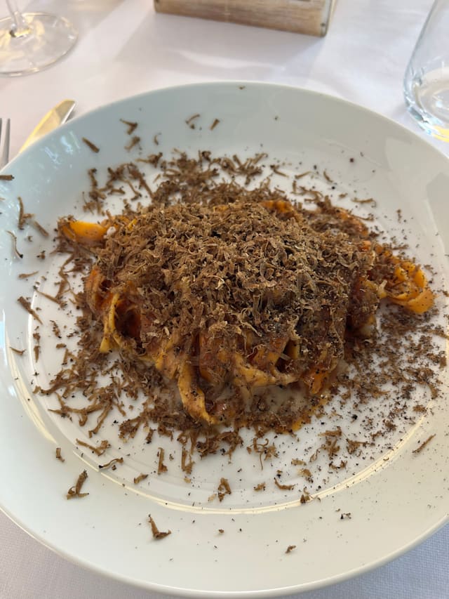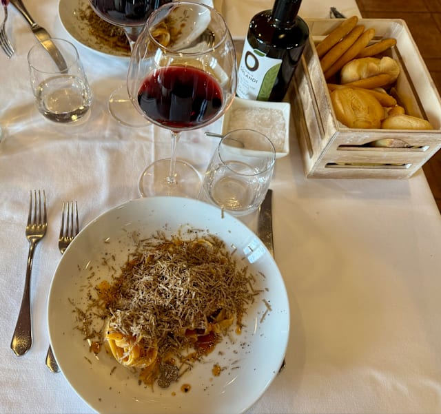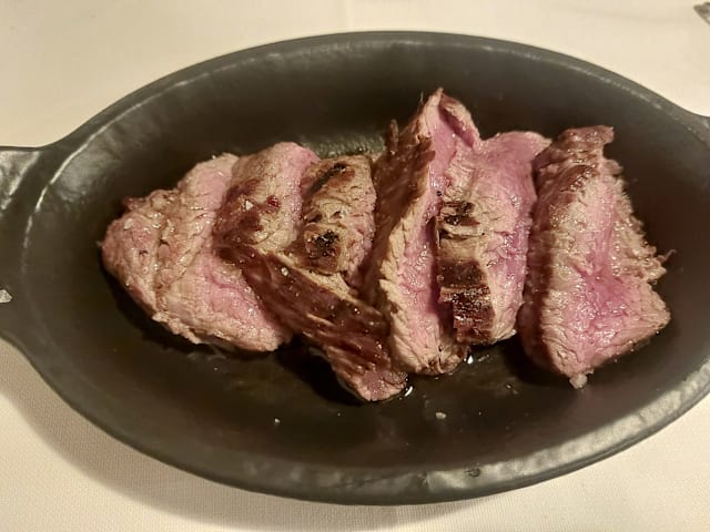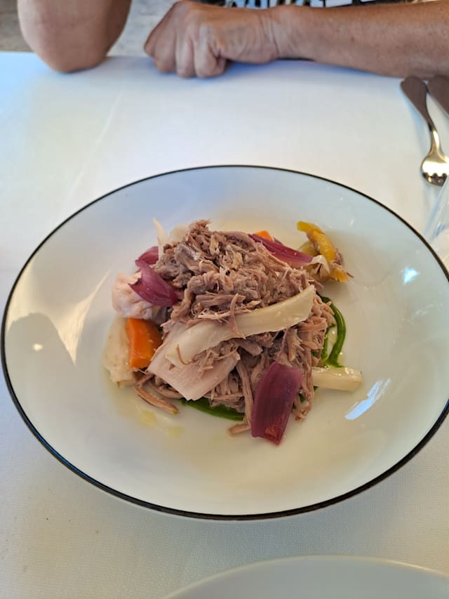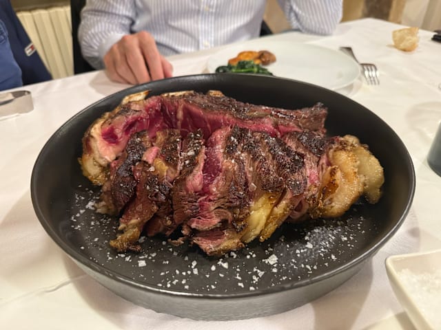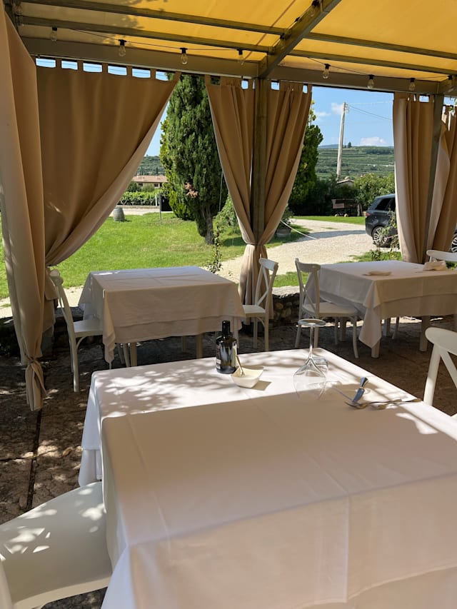 7.5/10It was very hot and the outdoor covering was inadequate to provide cool and shade. The chicken was well cooked, everything was average. We tried the puledro,at 90€/kg, but when we got the bill we found out that it was 1.4 Kg and we had not been asked or advised beforehand. So €126 just for that 1 item.That is not correct management policy.
