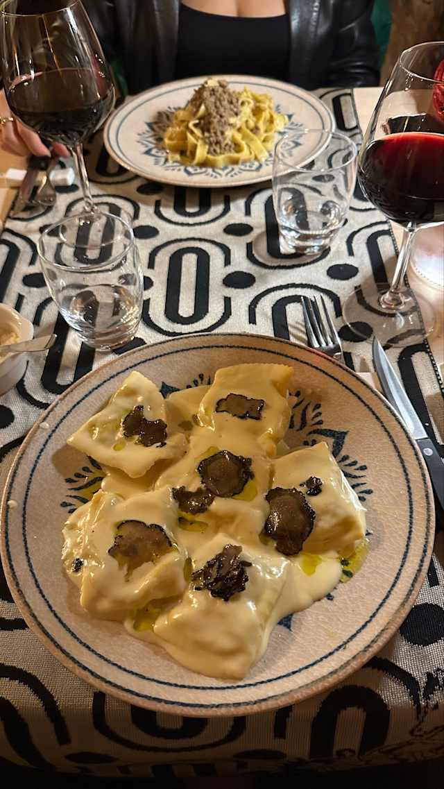 - Raviolacci ricotta e spinaci con fonduta di pecorino di pienza e tartufo