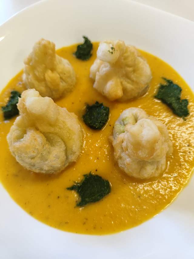 - Porcini, vellutata di zucca, guanciale tostato e amaretti