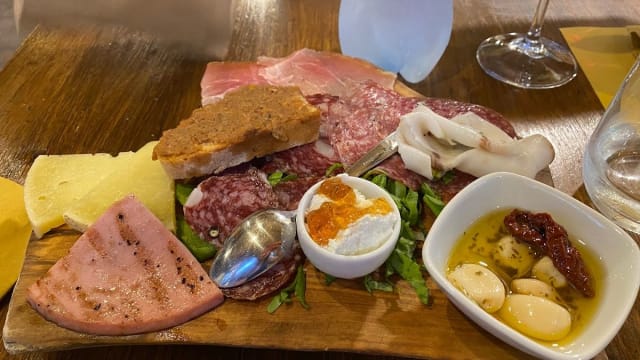 Prosciutto casalingo spalla casereccio salame toscano finocchiona soppressata salamelle, salame piccante, formaggi di pecora e vacca