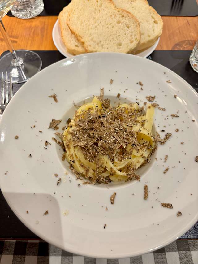 10/10Very nice restaurant in Gubbio. We had a good table outside in the street and enjoyed the truffle menu. Very tasteful. Perhaps somewhat more time between the first and the second course would be better. The after dinner grappa was delicious!