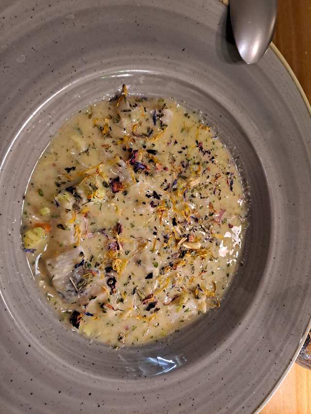 - Pescato del giorno alla griglia, vellutata di finocchi, verdure lesse aromatizzate