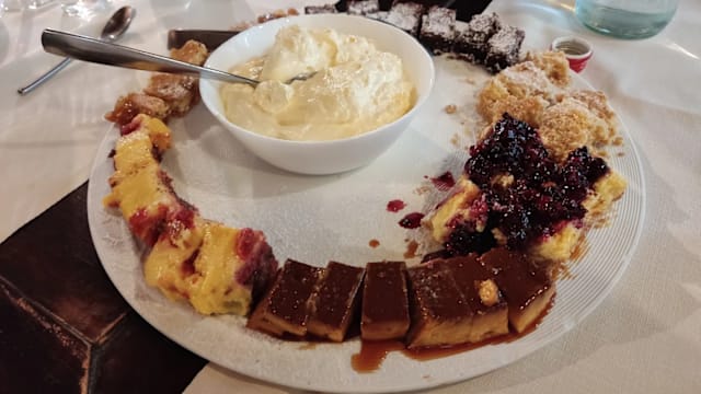 (Cotti ed al cucchiaio) con assaggio a discrezione della cucina di : sbrisolona, crostata di frutta, cheesecake frutti di bosco o caramello salato, tenerina ferrarese, mascarpone, salame di cioccolato, zuppa inglese, creme caramel