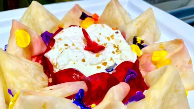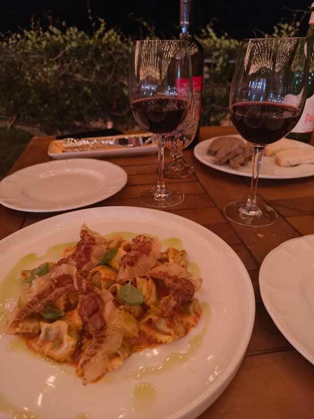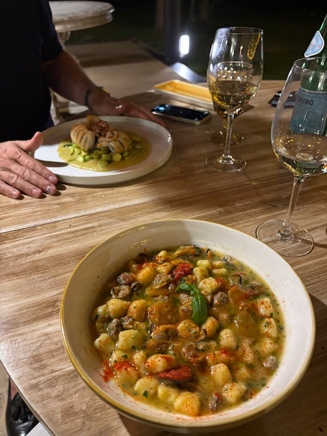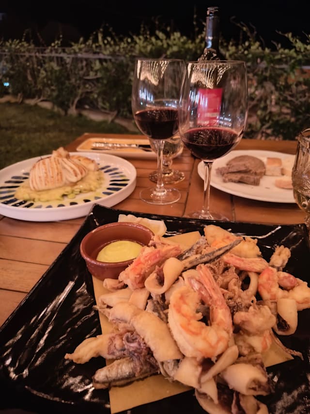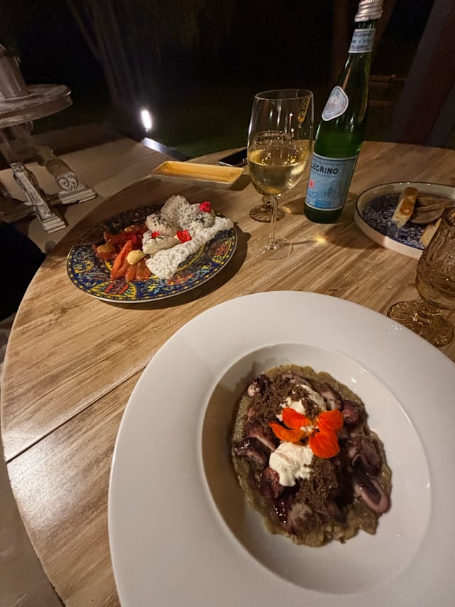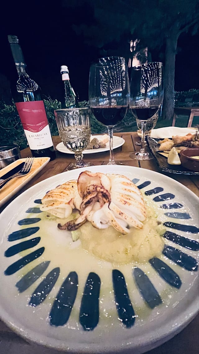 8.5/10Getting to the restaurant is an adventure on its own small roads and easy to reach but once you are there, the location is really beautiful. we had a good dinner with the two of us with good quality food and exceptional first course. pleasant place to hang out glass of wine and have some really good food and a reasonable place. Definitely recommended.