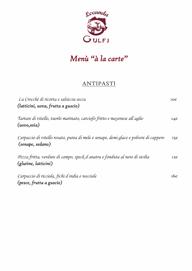 Locanda GulfiThank you for choosing us and for sharing your experience. We hope to welcome you back in the future. Kind regards, Chef Peppe Venezia