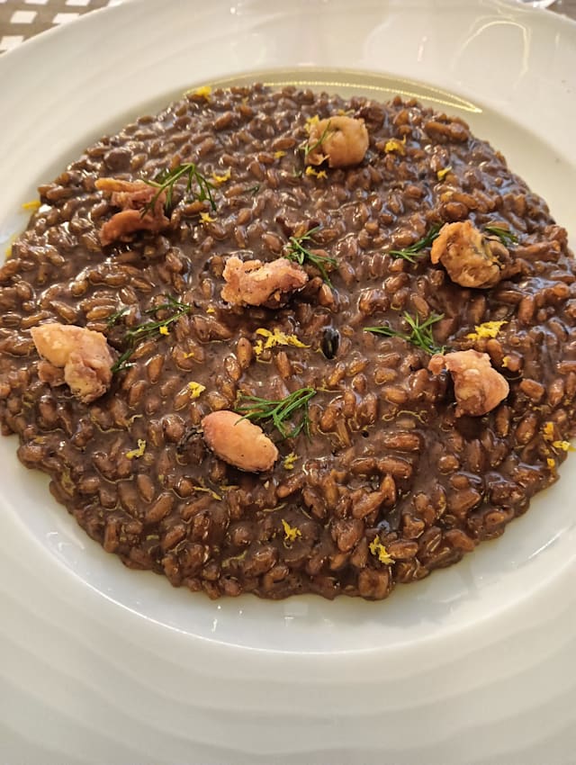 Il nostro risotto carnaroli “riserva alberona”, arricchito con una morbida mousse di trota, asparagi freschi e una grattugiata di tartufo nero estivo.
