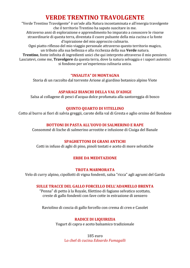 Menu degustazione verde trentino travolgente€185 per guest