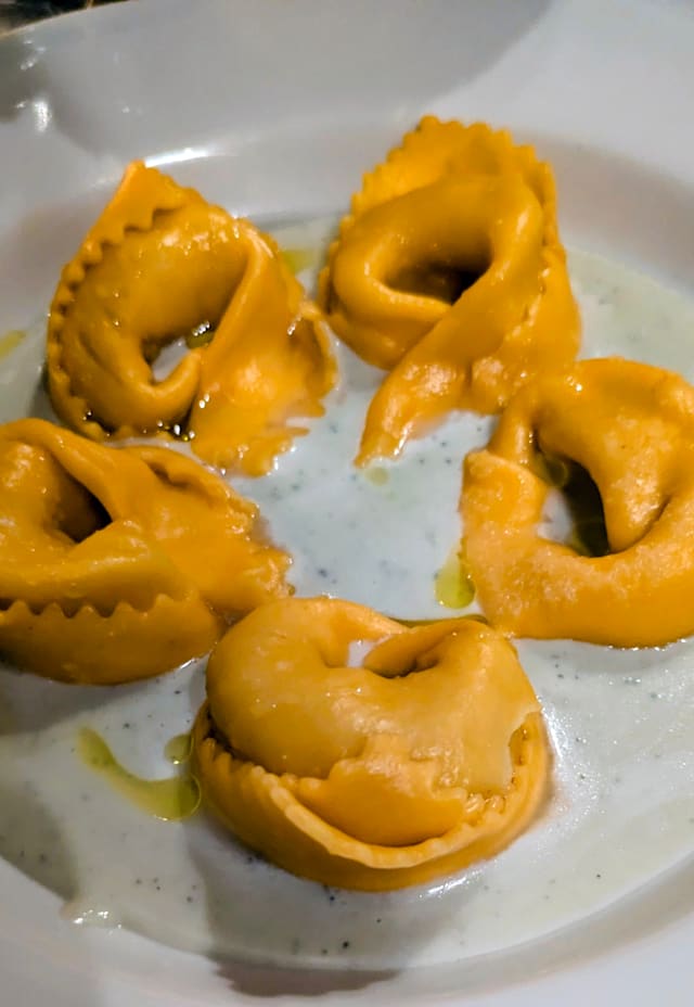 Ravioli di branzino con crema di zucchine e menta