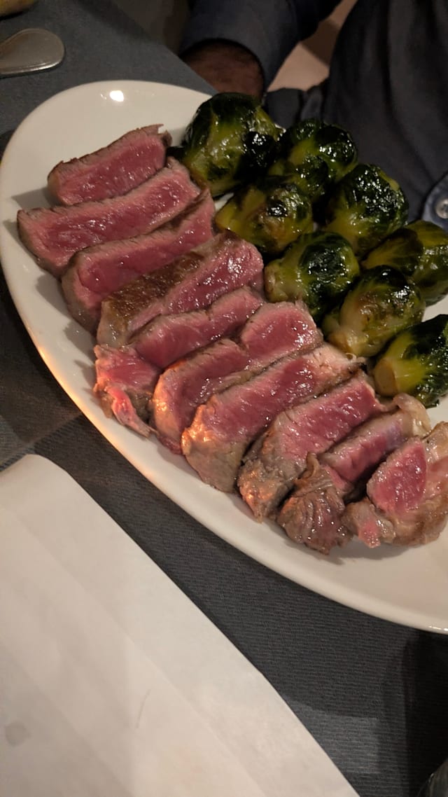 Tagliata di manzo con broccoletti di bruxelles