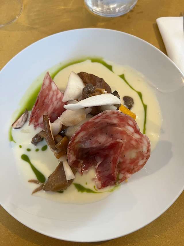 - Gnocchi di patate fatti in casa con fonduta di valmorel, funghi trifolati e chips di speck