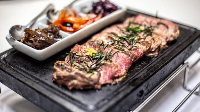 La tagliata di fiorentina su pietra con scalogno caramellato