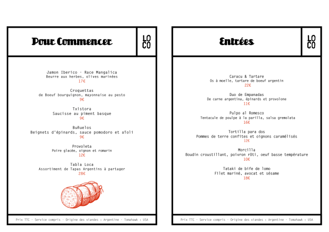 4/10Sadly we wen't for LOCO with such good reviews - but got let down by the sides - mest was good though... Completely undercooked and boring potatos in a whole, sadly the sour creme and particularly the 'oil with herbs' - think it was an attempt to make chimichurri.... The room was 30 C - even with outside temperature around 22 C or so. Red wine temperature followed the room temperature - thus way to high....! So many good steak restaurants in Paris to go to this one - especially thinking about the too high price tag!