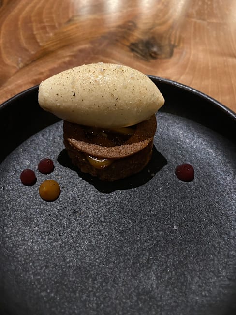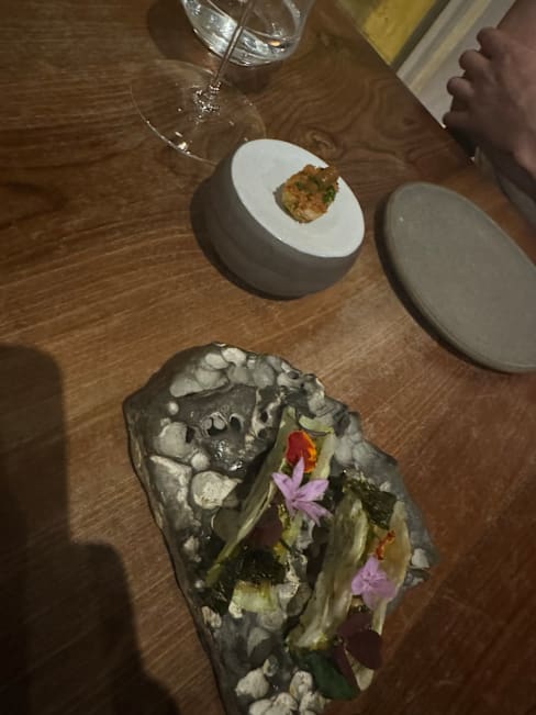 6/10Interesting experience but didn’t live up to my expectations. There were so many snack courses you were constantly being interrupted either for the plate/dish of the last course to be removed, or for the next snack to be served, and described to you. It felt hurried and you couldn’t have a conversation with your fellow diner during this. Things did relax a bit after the snacks. Lovely bread course but was reluctant to eat all of it, as 7 more course to eat. However the overall flavours in a lot of the dishes were citrus or vinegar, and a very soft texture. Really enjoyed the raw oyster and the croaker with beetroot, the beef was lovely but the sauce very bitter. I was too full to eat the petit fours. The atmosphere was quite serious and intense.