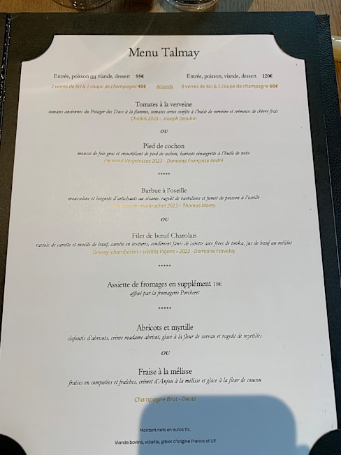 10/10Service was impeccable and the food was memorable from start to finish. Great pairings with local wines from the Burgundy region.