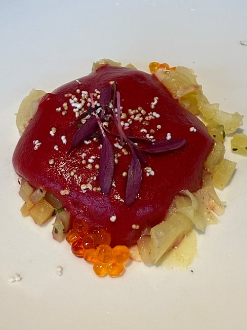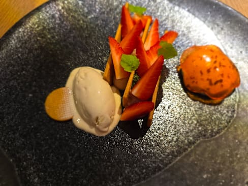 6/10Starters were average very commercial slicing vegetables and fruits and put in a plate , main course was really good , dessert was also very good, service is not of a Michelin star standard, ambiance is cold