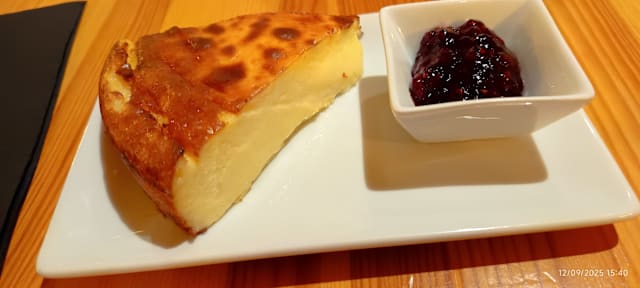 Provoleta al forn sobre llit de ceba caramel·litzada i melmelada de tomàquet