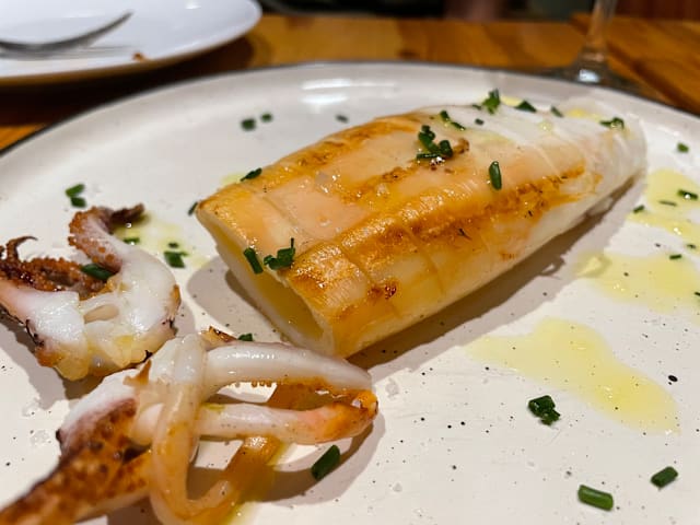 Cabdells a la brasa amb vinagreta de iogurt i formatge de cabra