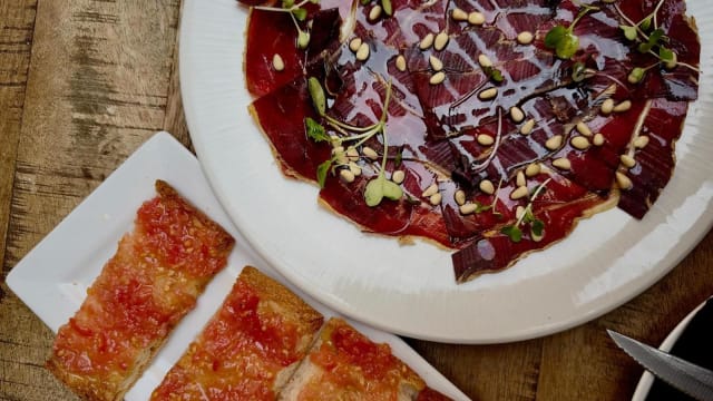 Cecina de vedella rossa gallega amb làmines fines d’api i oli d’oliva verge extra