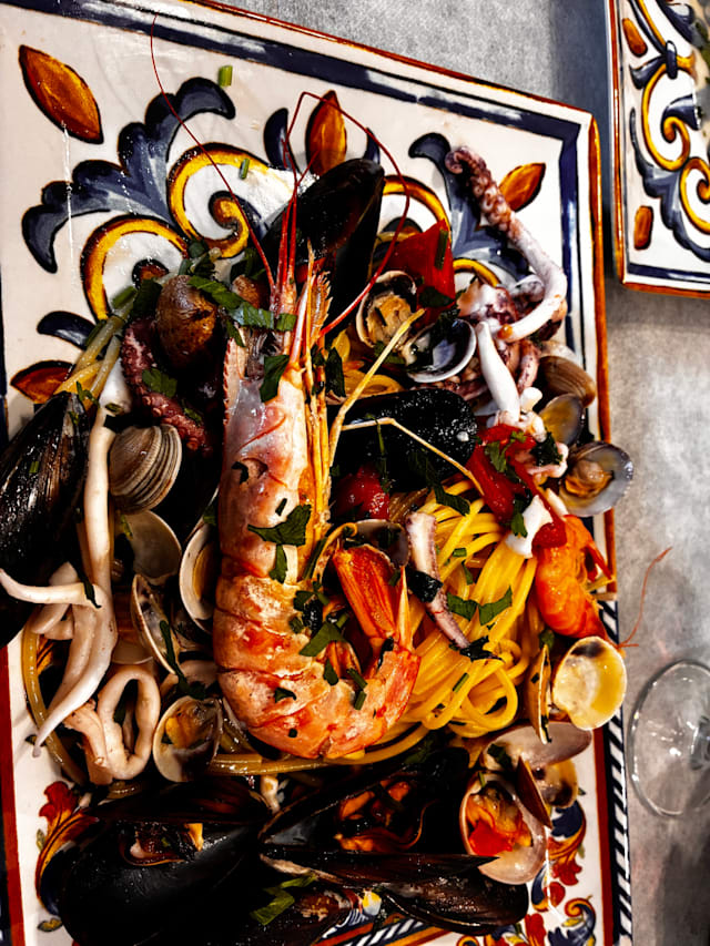 10/10We had reservations at 1245 PM but we finished Pompeii early. We took a chance to see if we can be accommodated. The restaurant was just opening and we were promptly seated. Locals were also eating in the restaurant. The pizza was good so was the seafood pasta.