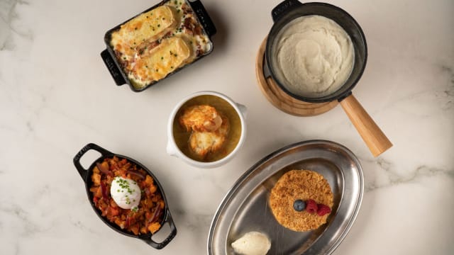 Explore the chef's selection menus with diverse dishes at fixed prices. Some are bookable via TheFork, while others are available onsite.