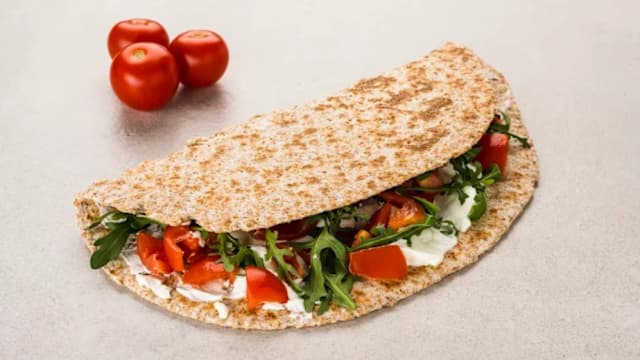 - Impasto 100% integrale con olio EVO, philadelphia, rucola e pomodoro ciliegino
