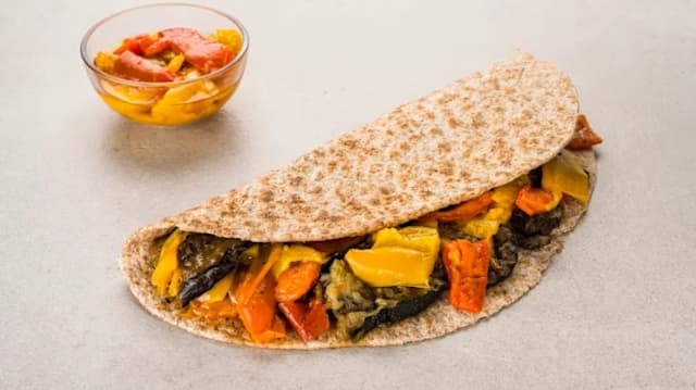 - Impasto 100% integrale con olio EVO, melanzane zucchine e peperoni spadellati