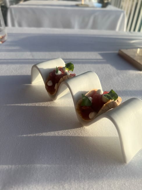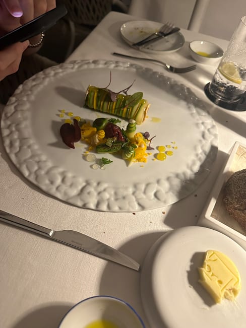 7/10Food lovely but attentiveness for replacing drinks was a little slow and when we first arrived and were sent to the terrace for drinks the waiter told us we couldn’t sit in two tables of two facing the sea we had to sit at a high table which isn’t good if your shirt so we ignored him and sat down then he ignored us so we didn’t get a drink! Not a good welcome ! Also sommelier was told not to advise Chardonnay and yet brought exactly that to the table ? Disappointed in the wine….