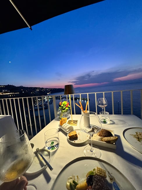 10/10+6Wonderful view of the gulf of Naples, of Vesuvius and Ischia. The food was sensational and the wine pairing excellent