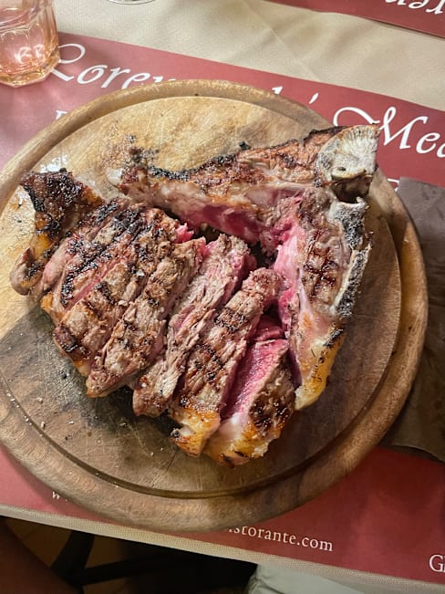 9.5/10First night in Florence and decided to eat close by our hotel. Booked a table for 6 and was warmly welcomed. The steak was amazing. It was so cool watching the staff bring out the T-bone on the sizzle plate and cut it up in front of you. Highly recommend the experience