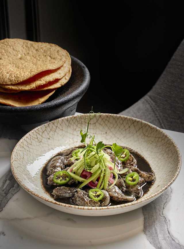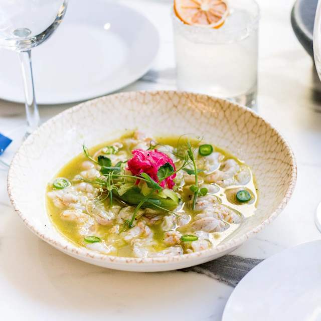 - Aguachile de langostino y habanero con mango