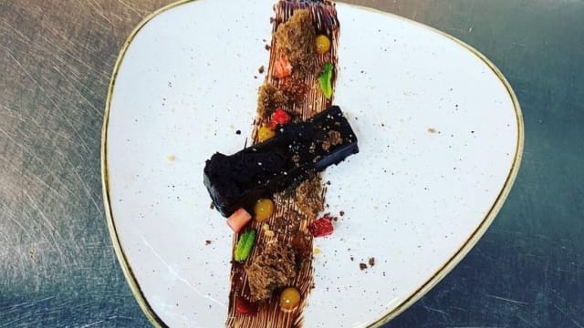 - Atún rojo de almadraba con base de queso mascarpone y toque de trufa